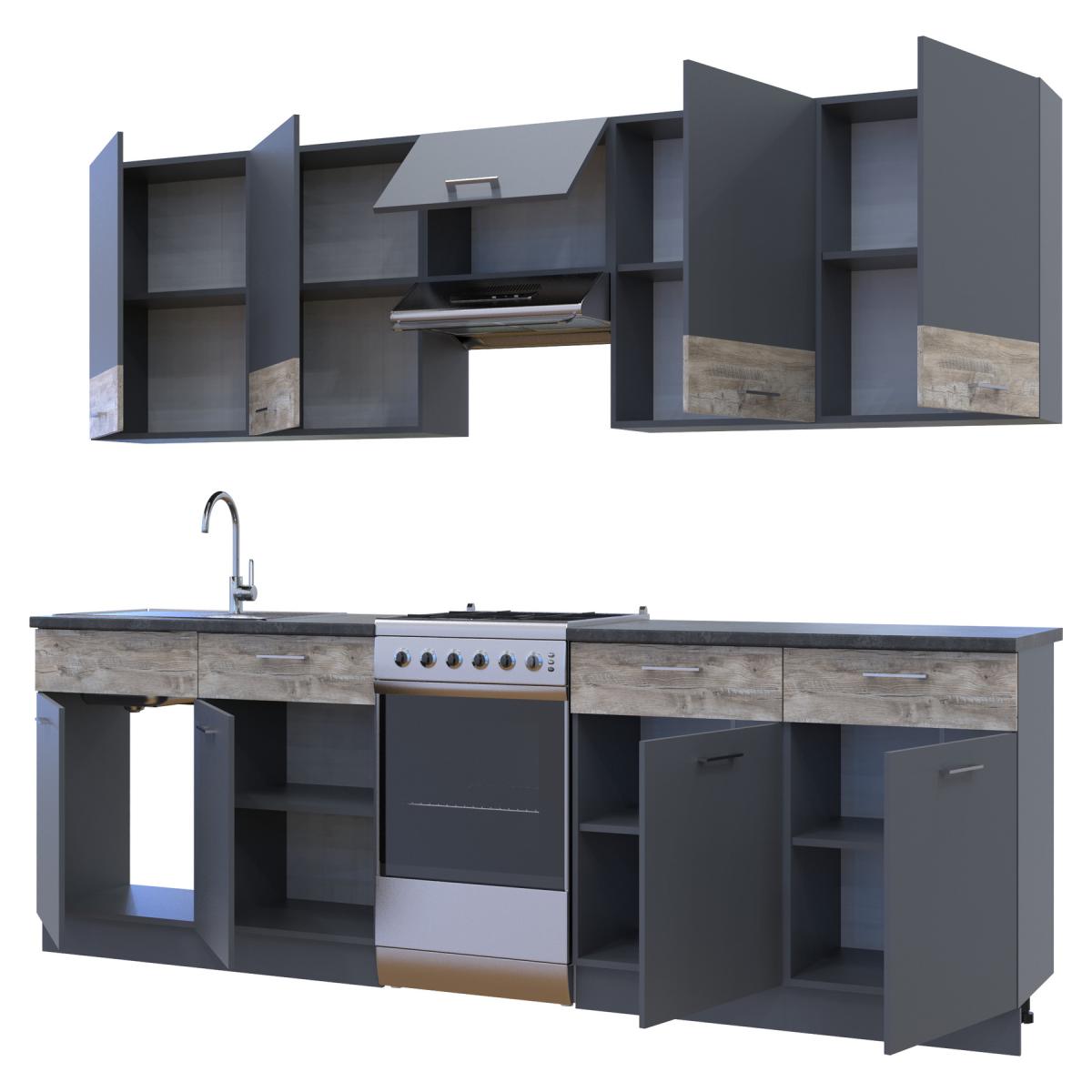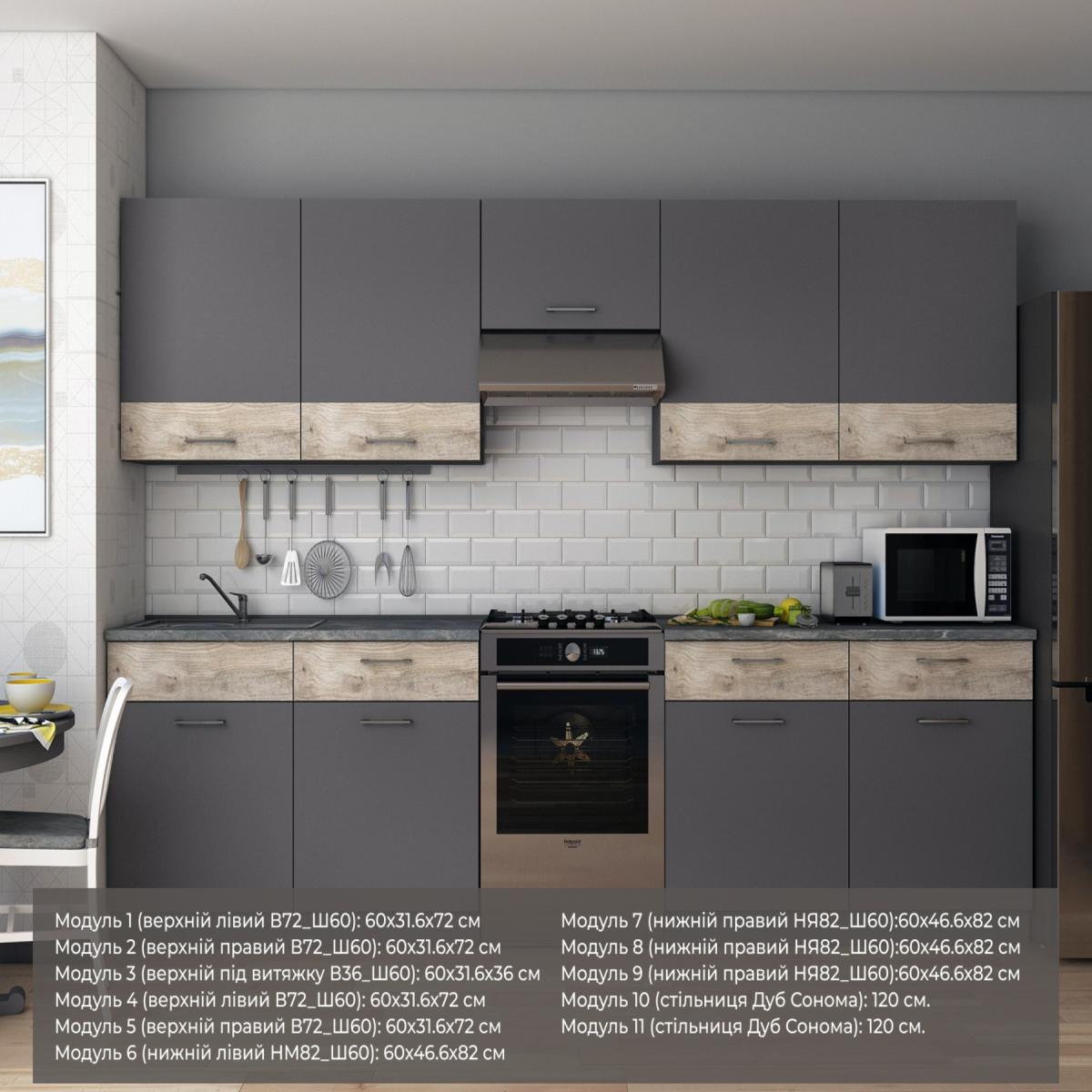 Кухня модульна Лея Doros 300х60х250 см Графіт/Дуб клондайк (DRS-011377)