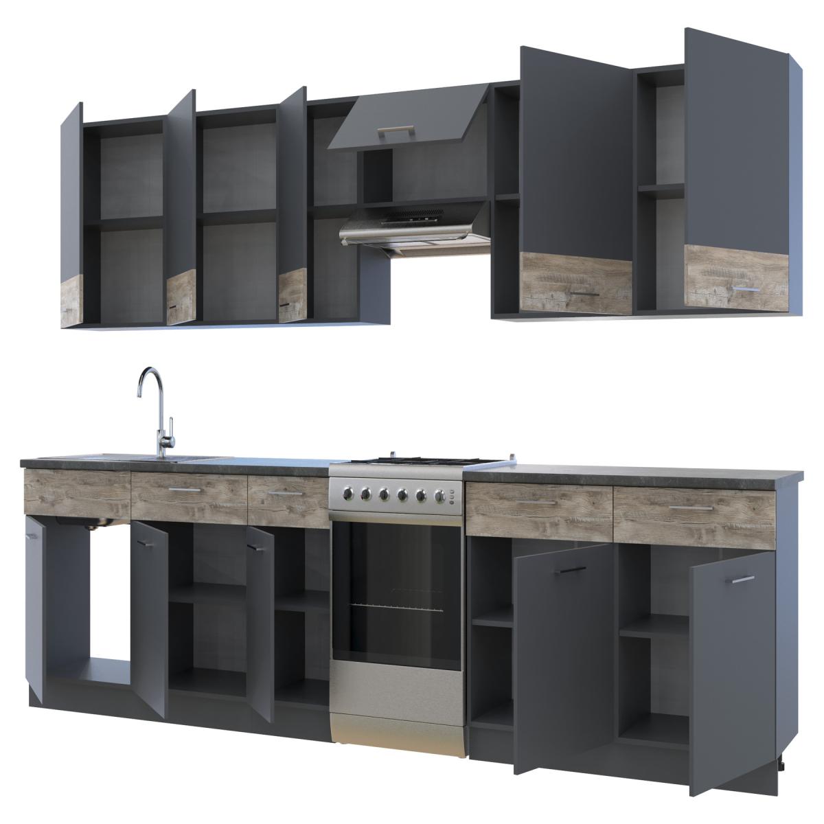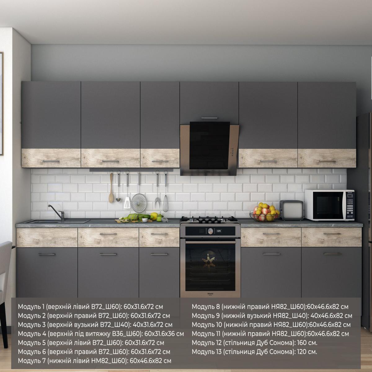 Кухня модульна Лея Doros 340х60х250 см Графіт/Дуб клондайк (DRS-011375)