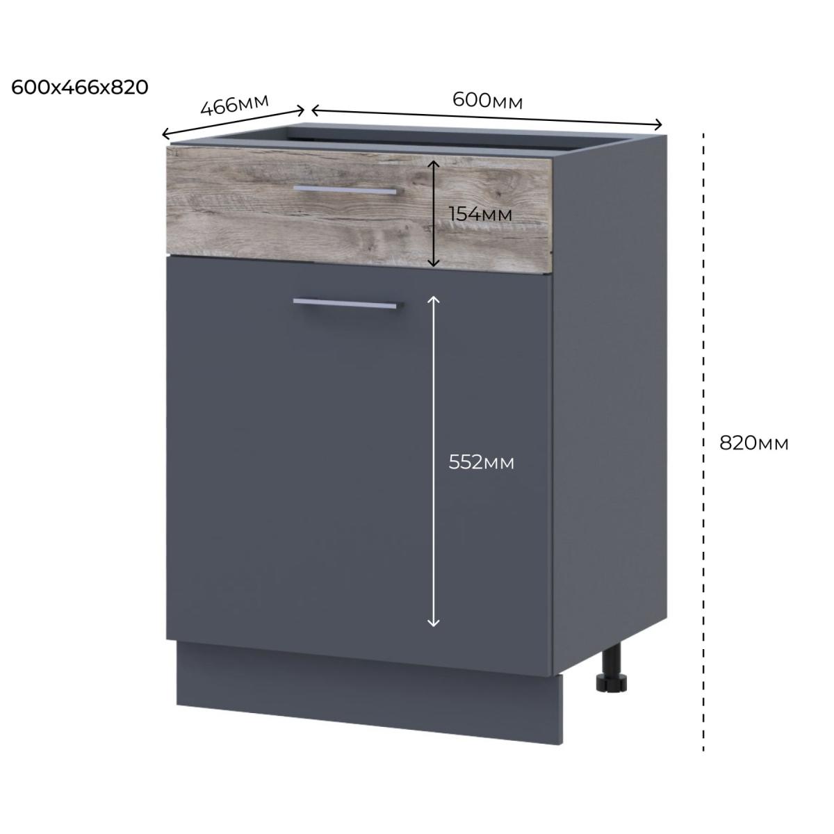 Кухонний модуль нижній Doros Лея НЯ82_Ш60 права 60х46,6х82 см Графіт/Дуб клондайк (DRS-011374)